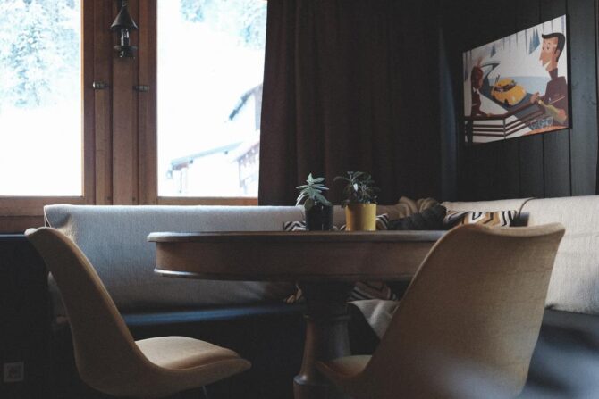 The warm wooden dining room overlooks the slopes, if you do not want to leave the house, you can watch others ski, enjoying a cup of coffee.