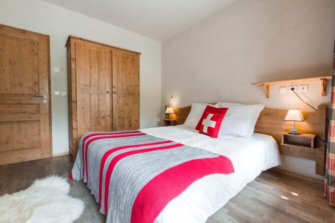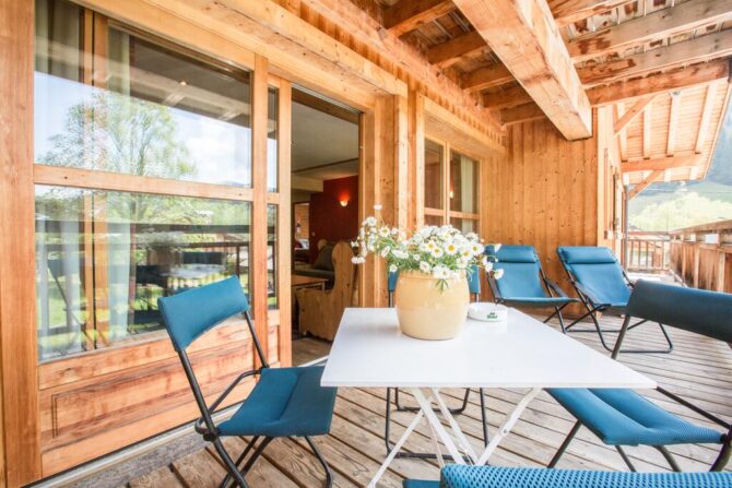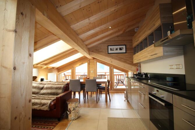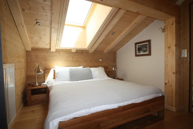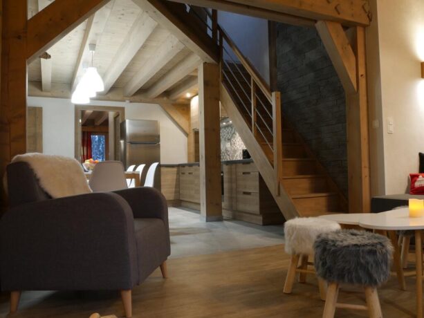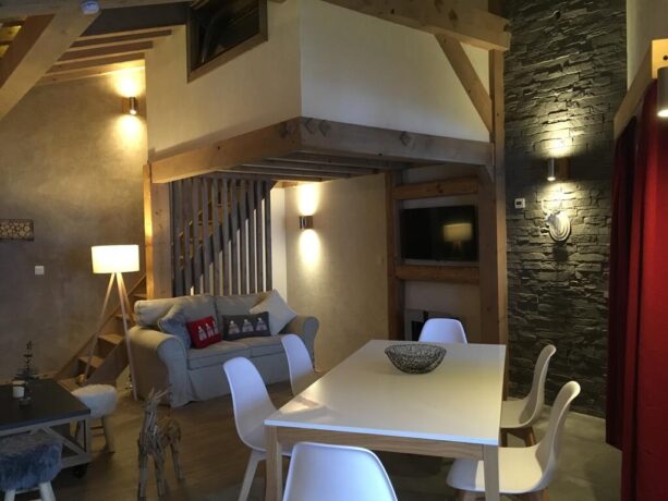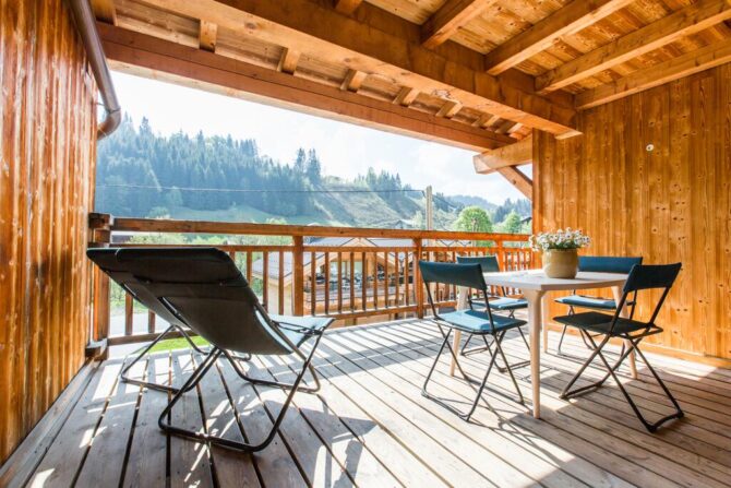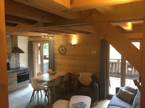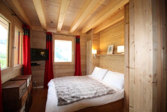 Alexandra was built in 2016 and also has a beautiful modern look. Apartment Alexandra have two levels, large windows and a balcony with beautiful views of the valley and the ski resort of Le Périère. On the ground floor there is a bedroom and a room with a bunk bed. This configuration makes Alexandra ideal for two families or three adult couples. This is a cosy chalet with a balcony where guests can spend romantic evenings.