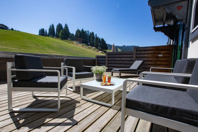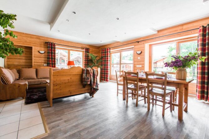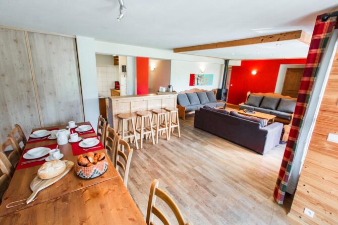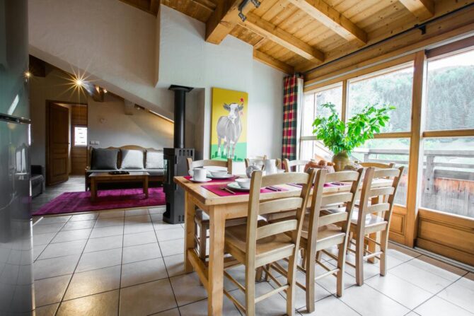 For more than 80 years, the Monnet family has owned this hotel and is honored to receive guests, respecting the heritage and traditions of the region. The whole history of tourism development in the village is reflected in the evolution of La Chaumière. The complex is divided into six spacious comfortable apartments ranging from 75 to 150 m2, which can comfortably accommodate from 6 to 14 people. All apartments are decorated in an authentic style and have a private terrace so that guests can enjoy the beauty of the mountains.