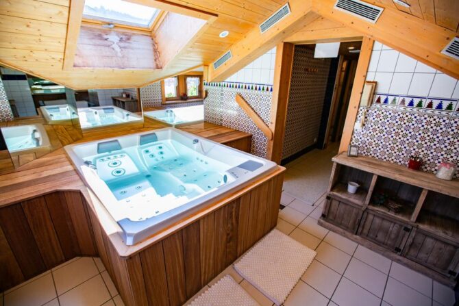 The hotel’s infrastructure includes a sauna and jacuzzi on the outdoor terrace, laundry, outdoor parking and a warm garage, ski and mountain bike storage rooms, and a mountain bike washing station.
