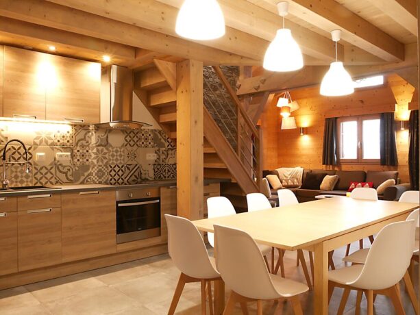 Despite the traditional appearance, the chalet is equipped with modern high-tech devices: each bedroom has a TV and a Sonos sound system®, the kitchen is fully equipped with modern appliances, there is a cinema for a family holiday. There is enough kitchen space and tools to prepare healthy homemade food for every taste.