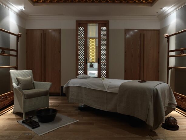 The master bedroom is a bright, low-ceilinged room with a four-poster bed, reading area and breakfast table. The same gentle tones, the same sense of lightness and unconventionality. A separate adjoining dressing room takes over the entire storage function; it is also furnished with a boudoir table. The second bedroom is captivating with a regally sized bed, but the walk-in closet is no longer dedicated as a separate room. But the bathrooms in both cases are spacious and classically austere.