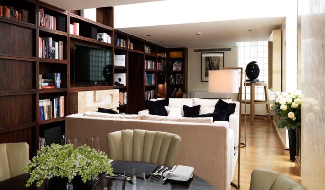As a true residence (albeit temporary), the penthouse has separate guest rooms and a room that will house the butler and servants. The dining room can accommodate up to ten guests. The interior is aimed at people with refined taste, which is emphasized by antique paintings with views of May-fair on the walls, as well as a chic collection of books with reproductions of works of art and literature of a bygone century on the shelves in the corridor.