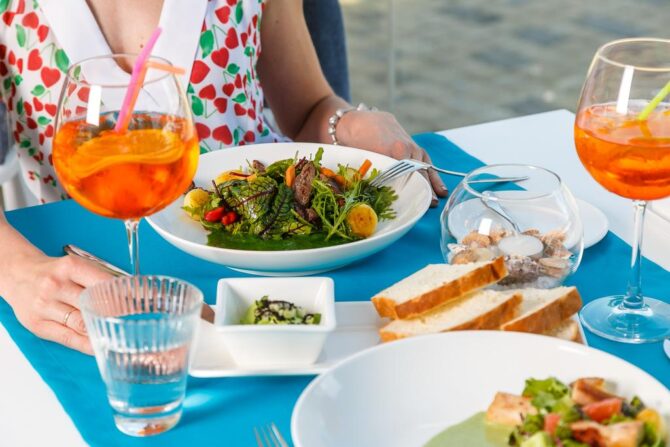 “Aquarium” leads a colorful Instagram, where you can admire almost all the dishes, and then try it live in the restaurant. From May 12 to the end of October, the restaurant organizes a Pool Bar by the pool, which offers all the famous cocktails for adults and many milk for children.