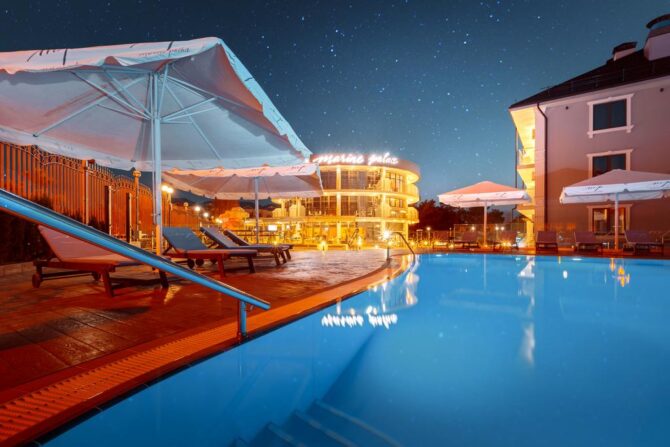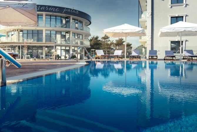 Attention! The Marine Palace Hotel provides a shuttle service – free delivery to guests from the airport and bus station. There is free parking on site, but it is very small, only 20 places.