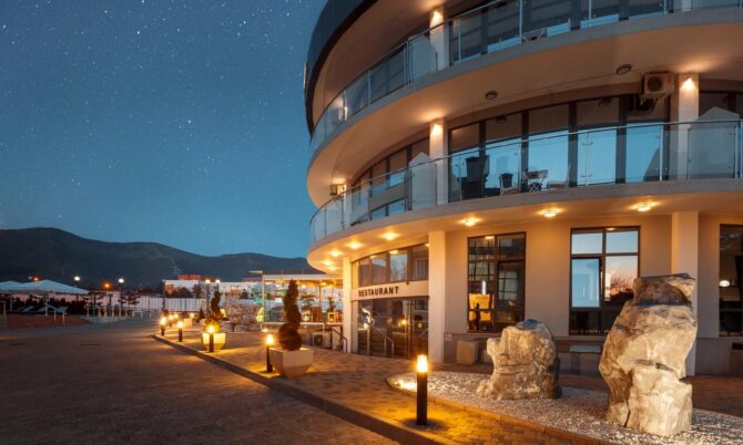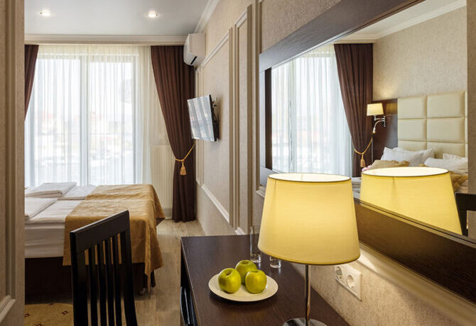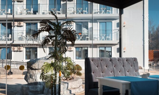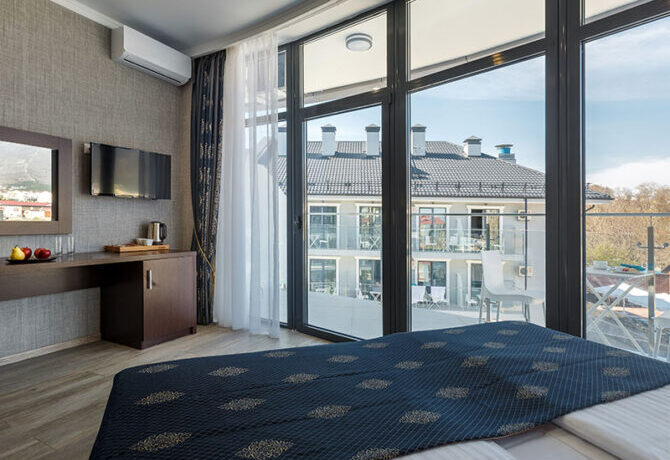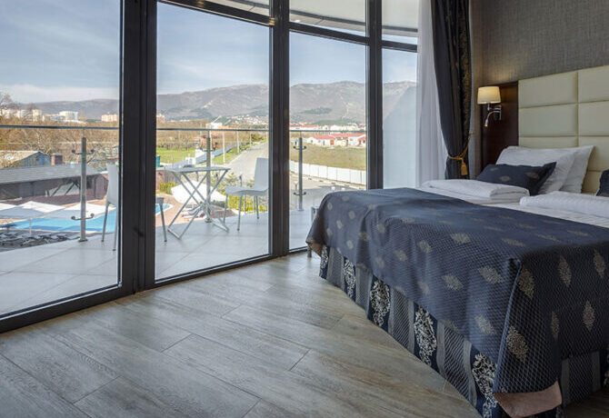 Hotel Marine Palace in Gelendzhik is two buildings and a total of 60 comfortable modern rooms, decorated simply, but elegantly and without unnecessary taste. In total, the hotel has three types of rooms – standard, studio and deluxe. The furniture in the rooms is new, the bed linen is clean and of high quality.