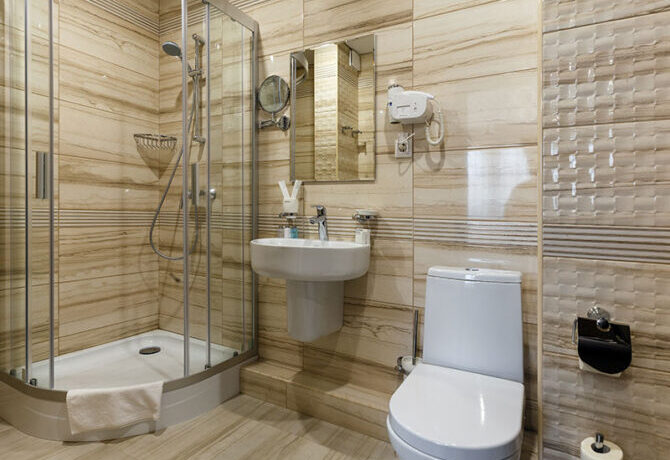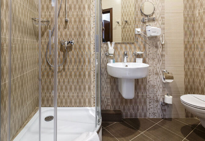 Features a seating area with a soft sofa bed with pillows and a foot pouf. In the Deluxe room, everything is a little more: a mattress (King Size), and a TV (42 inches), and even a bathroom. In it, by the way, there is a bath – not a jacuzzi, ordinary, but of sufficient size for an adult. Complete set of toiletries and all necessary cosmetics is similar to other categories.