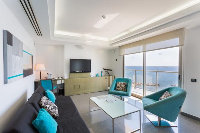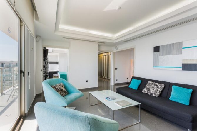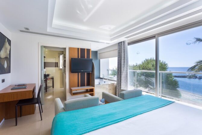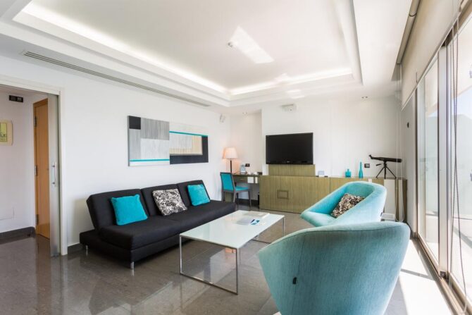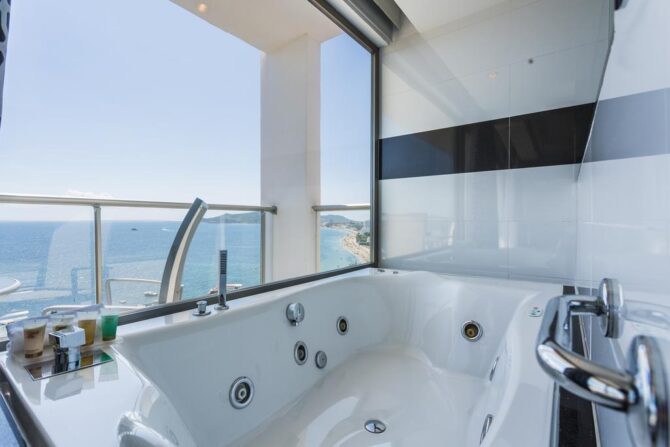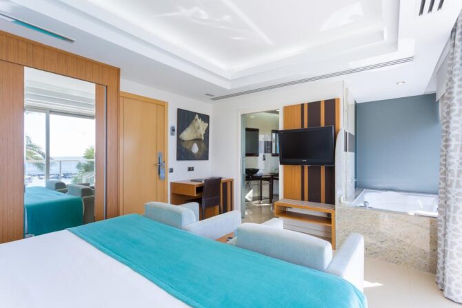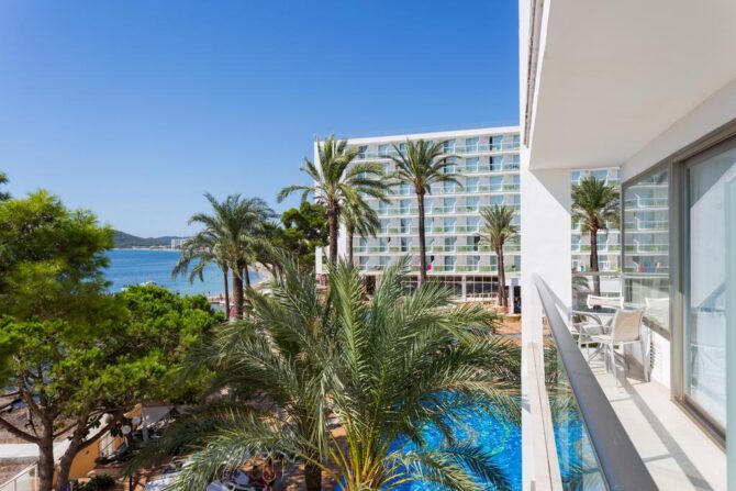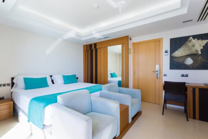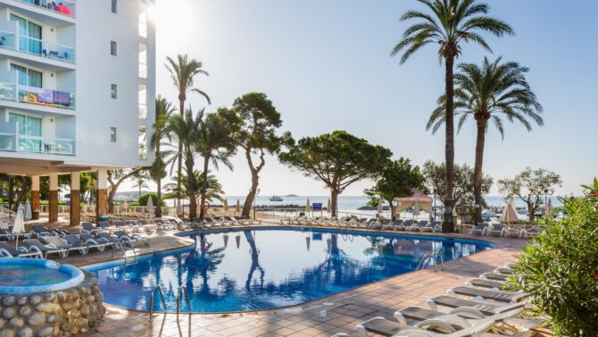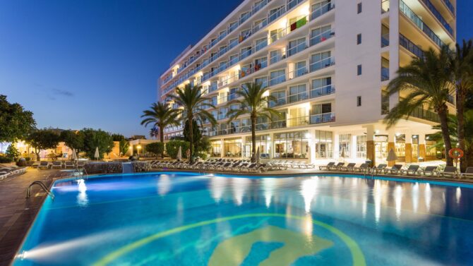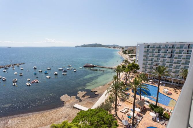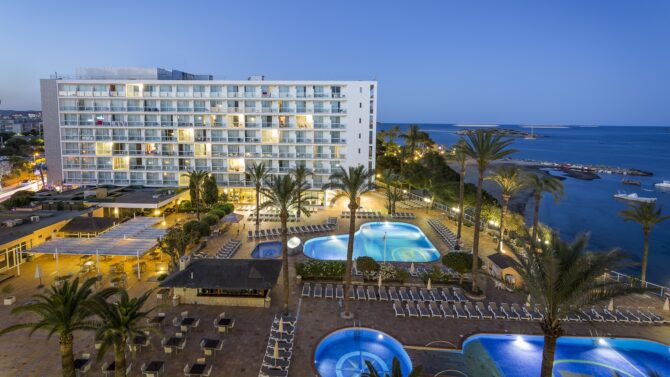 Sirenis is located on the island of Ibiza, in Spain. It is located directly on the beach of Playa den Bossa. It’s about 5 kilometers from the airport. The city centre of Ibiza is about two kilometres away. Next to the buildings is a bus stop, from where you can get to the popular attractions of the city.