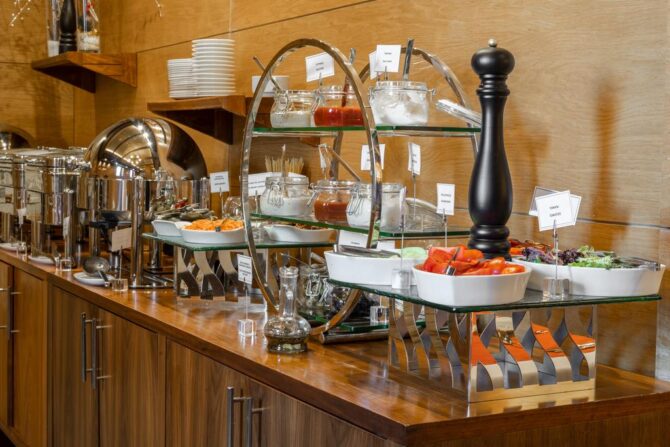 In the building of the hotel there is a restaurant of Savoyard cuisine “Raclette”. Breakfast is served every morning and is included in the room rate. Lunch and dinner are served à la carte. Guests can taste the hits of Swiss cuisine, prepared on the basis of molten gruyère cheese. The menu also features Mövenpick’s signature dishes, including Zurich veal, Casimir rice and beef tartare.