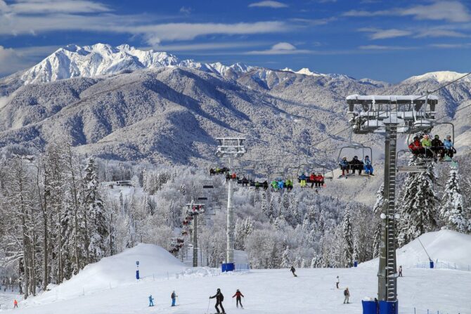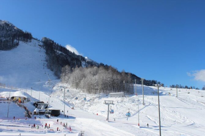 Although the entertainment map of Krasnaya Polyana includes about 100 attractions, the main ones are snowboarding and skiing. The winter season in the region lasts several months – from the beginning of December to the end of March. The height of the snow cover reaches 5 meters, on the tracks – up to 1.5 meters. Mild climate and excellent service create comfortable conditions for sports.