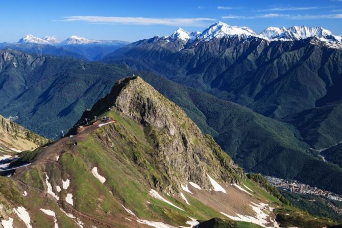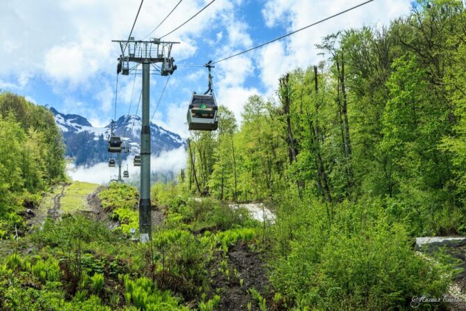 In the summer of 2019, a panoramic platform was opened on Krasnaya Polyana with a view of the Caucasus Mountains, the valley of the Mzymta River, the Aibgi ranges, the mountain peaks of Abkhazia and Adygea. To get to it, it is enough to buy a walking ticket “Gorki Tour” or a summer ticket “Summer in the mountains”.