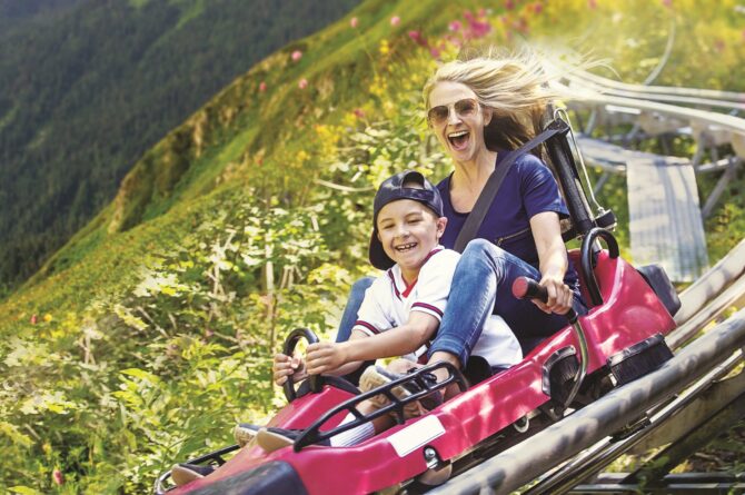 Fans of extreme entertainment can test themselves in the amusement park “Gorky Fly”. At an altitude of 2200 meters is the longest zipline in Europe, the length of which is 1027 meters, and the flight speed is 80 km / h. The attraction is available for children (from 10 years) and adults weighing from 40 to 110 kg.