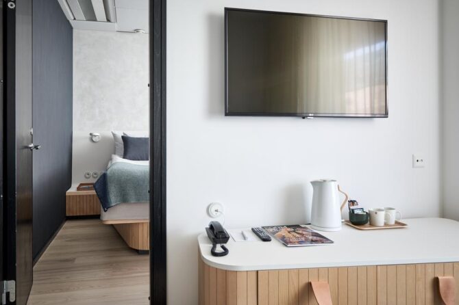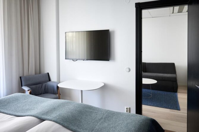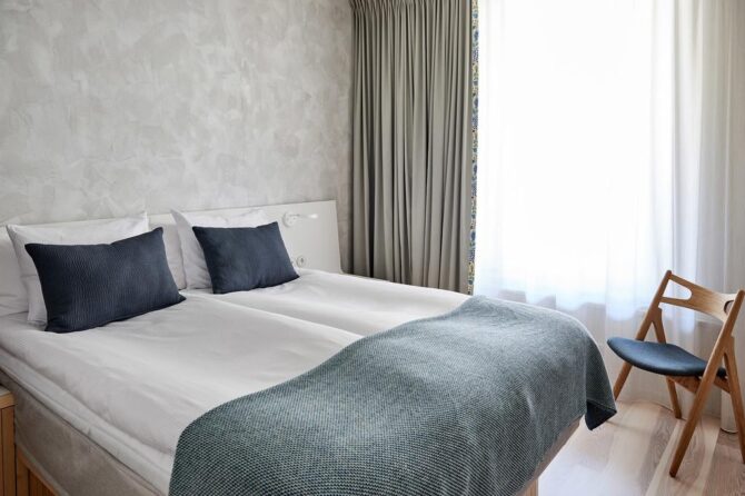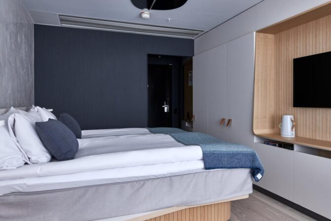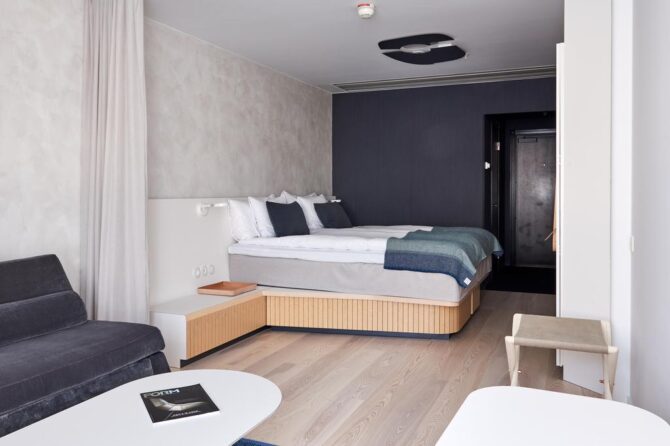 In the rooms, guests can independently control the lighting, and the correct color is helped by a brochure with a detailed study of the effect of various colors on the inconstancence and well-being of a person. The Nordic Light’s 175 rooms are simply furnished and comfortably furnished. All rooms have free wireless internet access, cable TV, minibars, handmade beds from Hastens and excellent noise insulation. Bathrooms are equipped with practical plumbing and equipped with hair dryers, bathrobes, hygiene products.