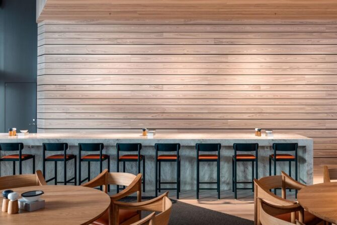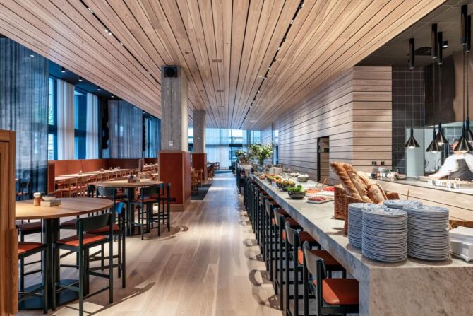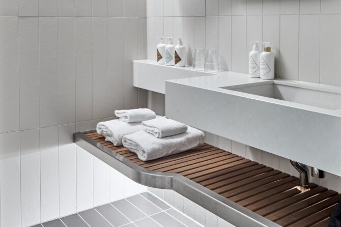 The new building was built on the site of the former police station. For a world-class hotel, the tandem of architect and designer chose the theme “Light and Sea” as the main one. According to the designers, they were inspired by the colors of the aurora. We can safely say that the interior of the hotel is created by light and texture of materials, and not furniture and objects, as usual. The hotel has its own team of lighting specialists who know how to compensate for the lack of light in the northern latitudes and influence the mood with the help of color lighting. Five times a year, the light in the hotel changes, complementing the natural light and conserving energy when there is enough natural light. Thanks to the external lighting, part of the hotel seems to be hovering in the air.