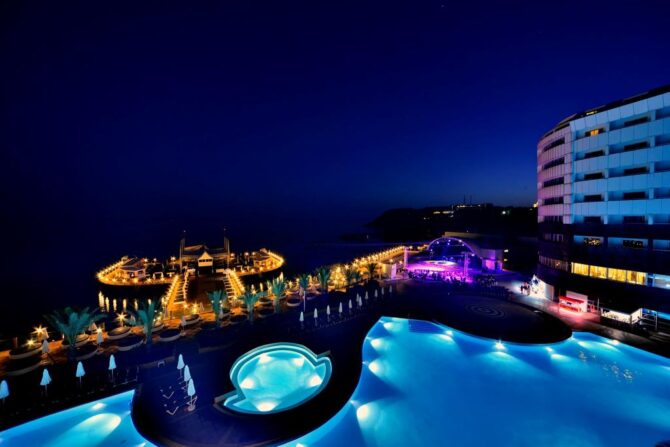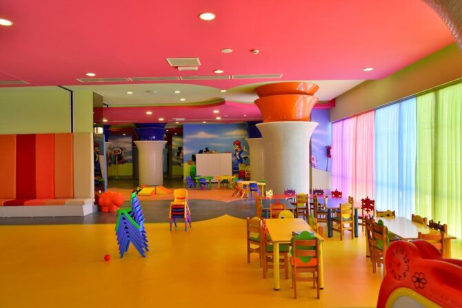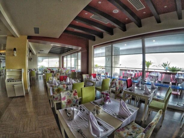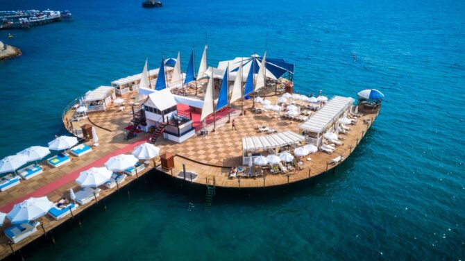 There is an Irish pub that is only open in the evenings. The pool bar serves drinks, snacks and ice cream throughout the day. On the beach and pier, the bars are open only until six o’clock in the evening, but their advantage is that you can enjoy a meal in the immediate vicinity of the sea. In the disco bar until two o’clock in the morning there are fun parties with an entertainment program.