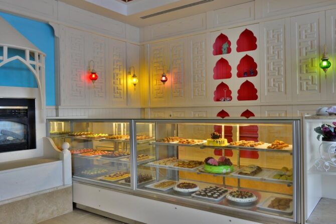 From 11 a.m. to 4 p.m., the Gezleme service is available. There is even a pastry shop where you can taste local pastries and Turkish sweets. In the chef restaurant, the service is conducted on the principle of a la carte. To visit this institution, you must register in advance. It works for dinners. Periodically, the chef goes into the hall and arranges a show for guests.