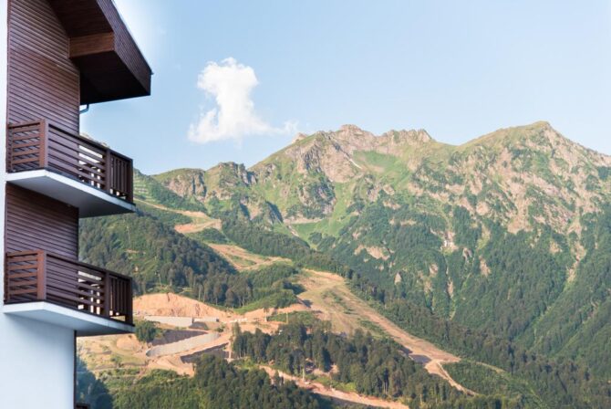 One of the most famous ski resorts in Russia now – Rosa Khutor – where the Panda Shelter Hotel is located. The resort traces its history back to 2003 and was the first large sports project in the post-Soviet space in the south of our country. It was planned near Krasnaya Polyana in Sochi – the most beautiful place in the Aibga Mountains. The highest point here is called the Stone Pillar (more than 2300 meters above sea level). There is no doubt that Rosa Khutor became especially popular after the XXII Winter Olympic Games in 2014, but for many years before this event, the resort has established itself as a professional, well-equipped place for both amateurs and craftsmen.