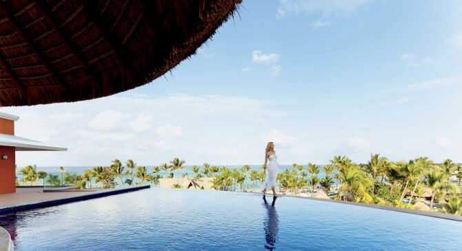 The chic Barcelo Bavaro Palace Deluxe Hotel in the Dominican Republic is designed for the perfect oceanfront vacation. It is part of a complex located on the coast of Punta Cana. This resort has its own beach with white sand and turquoise ocean, which stretches along the coast about two kilometers.