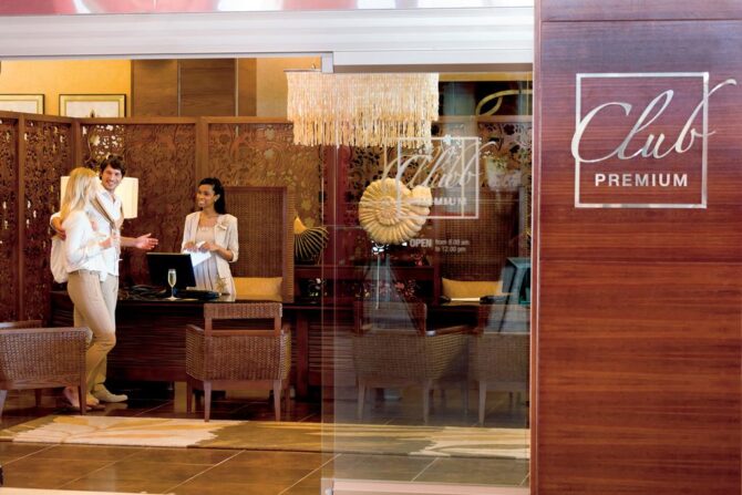 The Premium Club is located on the first line of the beach. You can not only see but also hear the ocean from the rooms in this class. Basic category – Junior Suite with terrace and garden or balcony and Jacuzzi. The Master Suite features a dining room, two bathrooms, and two TVs. From the ground floor rooms terrace direct access to the beach. The two chic Grand Master Suites include not only the presence of a Jacuzzi on the balcony and in the bathroom, but also a computer with printer and scanner. Maximum two people can be accommodated here.