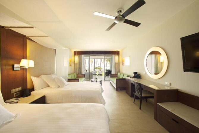 Nathalie: “We vacationed together with my husband, I can safely say that this is the first such place where one wants to come back again. We lived on the third floor with windows overlooking the lake. Very quiet and peaceful all around. The building is not new, but all very clean and cozy. Had a tram ride, played free mini golf, went to the all day bars, visited the lovely coffee shop, it was just incredibly delicious and aromatic coffee. Beautiful pools and fountains. The staff are friendly, welcoming, helpful, thank you so much to them. Even during the hurricane we felt safe.”