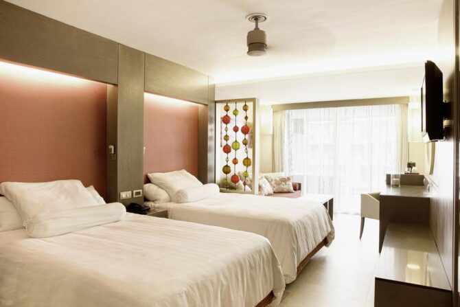 There are a total of 1402 rooms of different categories in Barceló Bavara Palace. They are modern, furnished and equipped with modern furniture and appliances. Each has an iPod station, widescreen TV, telephone, refrigerator, and many categories have microwaves and computers.