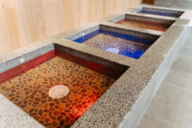 After the steam room, you can go down a convenient ladder directly into the ice font. In the recreation area there are soft sunbeds, a tea ceremony is offered.