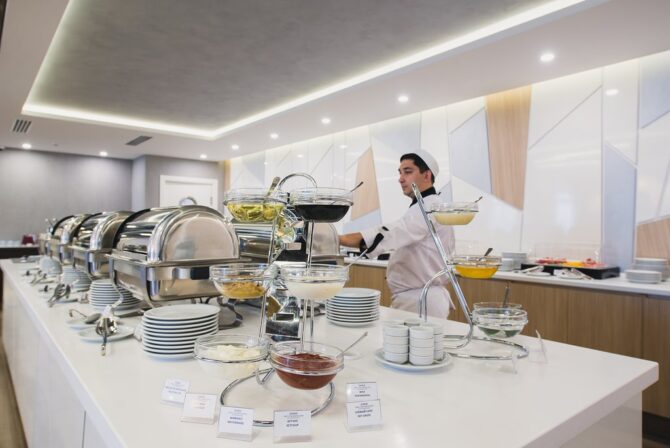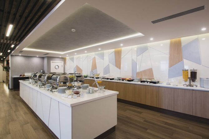 When booking a room, you can order breakfast, half board or full board. Meals are available by prepayment. Staff can provide room service. Room service is available for all room categories. Depending on the season and the fullness of the hotel, meals are organized in the format of the “Swedish line” or complexes. When ordering full board, a discount on food is guaranteed.