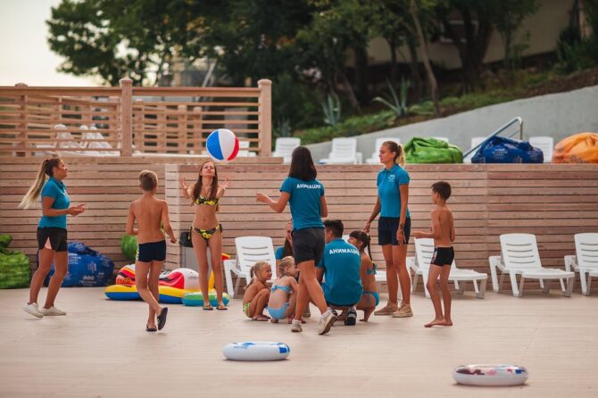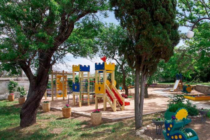 The medical center offers several wellness programs for the child. On the territory of the park and near the beach there are sports grounds. You can always rent a bicycle, scooter, toys, accessories for swimming and swimming. There is a shop of children’s goods.