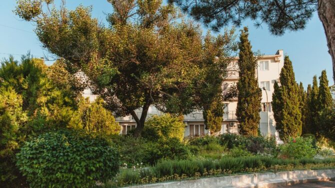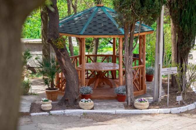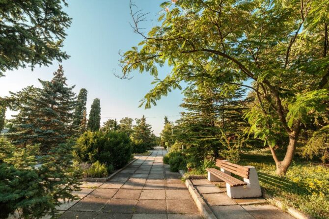 Acquaintance with the Crimean fairy tale can begin here – in Sevastopol. The 4-star park-hotel “Sand Bay” hospitably welcomes guests throughout the year. The hotel complex offers a range of services aimed at family and health recreation. Around there is an ancient arboretum, guests have direct access to the sea. A center for sanatorium and medical treatment has been established at the hotel. The resort town covers an area of 4 hectares.