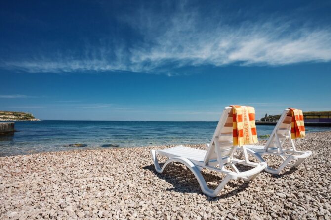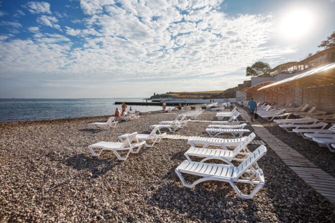 Pay attention! It is recommended to take beach shoes with you to the beach so as not to injure your feet on the sharp edges of the pebbles.
