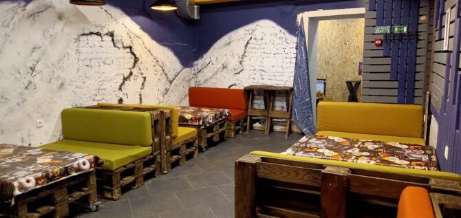 The loft bar is conveniently connected to the hotel’s cinema. Companies like to book both rooms at once to celebrate a holiday, watch a sports match or a movie. From drinks in the evening beer is served, there is a coffee / tea card, juices, mineral waters. From food – light snacks.