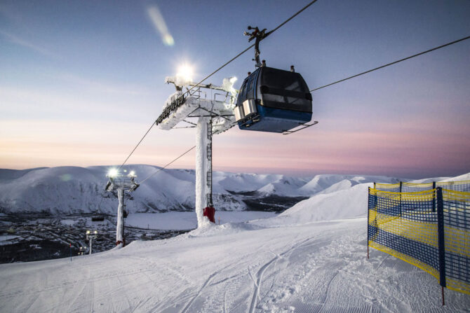 The resort is located beyond the Arctic Circle, so almost all the tracks have lighting. The ski season lasts from late November to mid-May. It can be extended if there were heavy snowfalls in winter, which provided snow cover of the slopes.