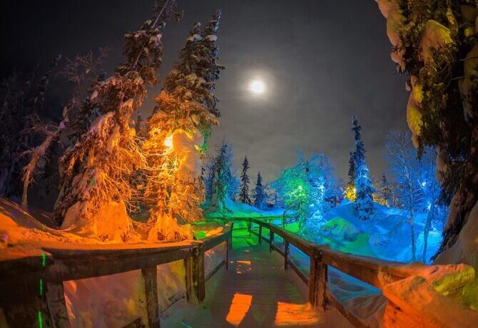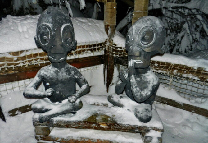 Another interesting place is the park “Mysterious Forest”. His story is connected with aliens. According to legend, UFOs were found in local forests. Now visitors are waiting for an incredible journey into the mysterious world of the art park. Bizarre creatures live in it, with the help of illumination an atmosphere of mystery is created. Northern nature here is presented in a completely different perspective than people are used to seeing it.