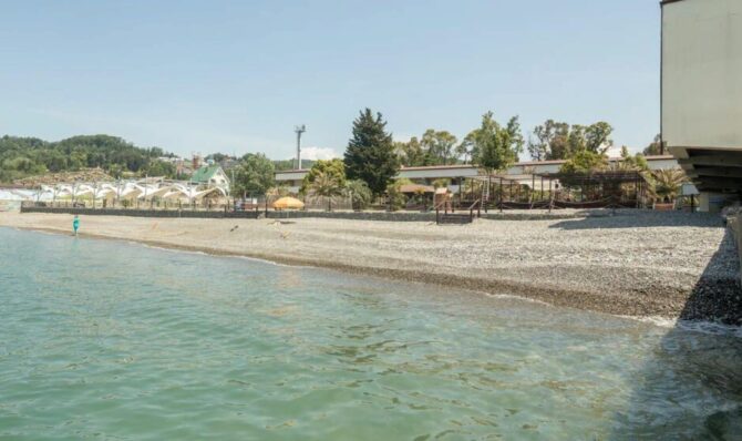 The luxurious beach of the pension stretches in length for 200 meters with a width of 15 meters. The shallow pebble beach is replete with sun loungers, excellent multi-colored umbrellas and snow-white shade canopies. The beach area is great for sunbathing. Right on the seashore there is an aerarium.