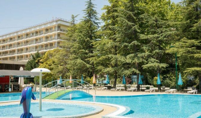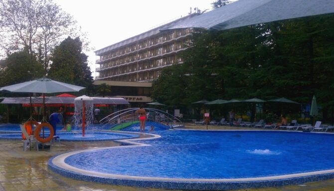 Pension “Burgas” is a modern three-star complex, located in a picturesque place on the Black Sea coast. The pension is located near the beach, on the territory of an amazing arboretum, within which rare subtropical plants grow. Resting in our pension you can swim in the gentle sea, take wellness courses and get acquainted with local attractions.