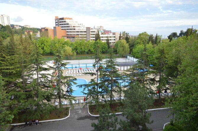The first and second buildings of the boarding house have seven floors each and are built in the same architectural style. They are equipped with elevators. From the first to the third floors from all rooms there is an amazing view of the park area and the territory of the boarding house. Starting from the fourth floor, an excellent side view of the beach area and the Black Sea is additionally offered.