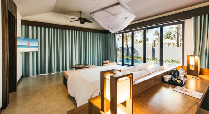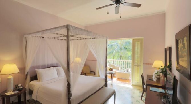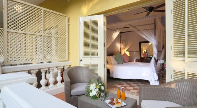All apartments at La Veranda Resort Phu Quoc – MGallery by Sofitel are very spacious and decorated with a colonial theme. For the architectural solution, a unique mosaic tile and dark wood were used. Each room is equipped with luxurious linens.
