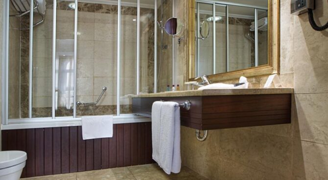All rooms are air-conditioned and feature a minibar and a flat-screen TV. Among the advantages of this hotel it is worth noting the rooms in which beds are equipped with orthopedic mattresses, which guarantees you a calm and complete rest. Rooms have tea and coffee making facilities and free internet. Each room has a private bathroom and a hairdryer.