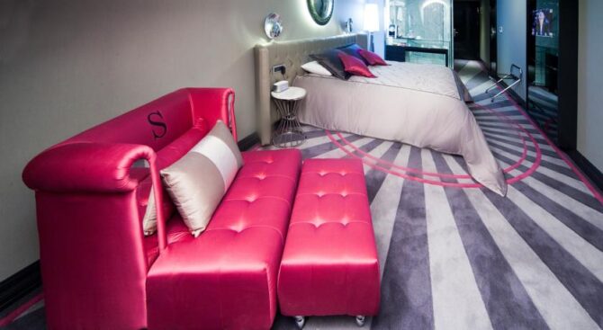 Each floor of the hotel is decorated in its own color palette. Each air-conditioned room has an LCD satellite TV and a stocked minibar. An espresso machine and an electric kettle are also available. Some of the hotel’s rooms offer unforgettable garden views.