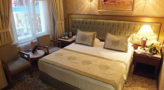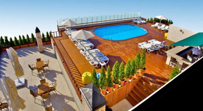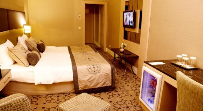 Do you want to enjoy the amenities of your stay at the hotel? Then we recommend the Grand Washington Hotel,which is also located about 13 minutes walk from the famous Grand Bazaar in Istanbul. The frame of the hotel offers panoramic views of the city with large swimming pools and hot tubs. In addition, vacationers can use the services of an indoor pool, Turkish bath and sauna. This is only an incomplete list of all the benefits of this hotel.