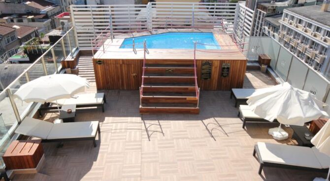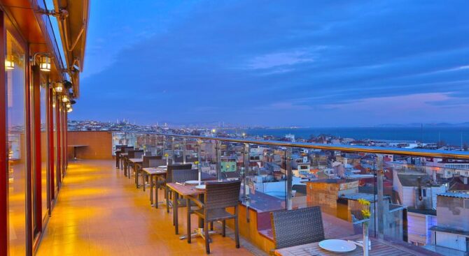 You can enjoy the taste of Turkish and international cuisine. Vacationers can take drinks with them to the bar, which is located on the roof, which offers an unforgettable view of the Bosphorus.