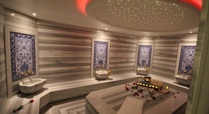 Spa facilities include traditional hammam and foam massages. In addition, you can train in the fitness club.