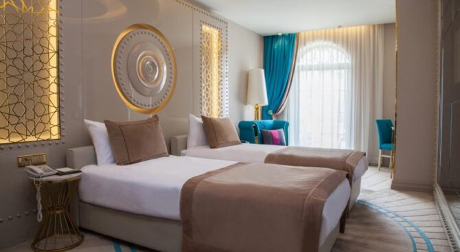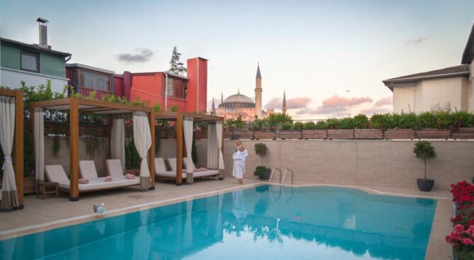 Have you ever been to a real palace? Then the Sura Design Hotel & Suites offers you to plunge into a real palace atmosphere. It also has an advantageous location – in the heart of Istanbul in the Sultanahmet district. Among the advantages of the hotel it is worth noting the soundproofed rooms, where there is also free Internet. Daily guests of the hotel can enjoy free afternoon tea – this is another advantage of this institution. Among the advantages of the hotel can be noted and live music, which pleases guests every Friday and Saturday.