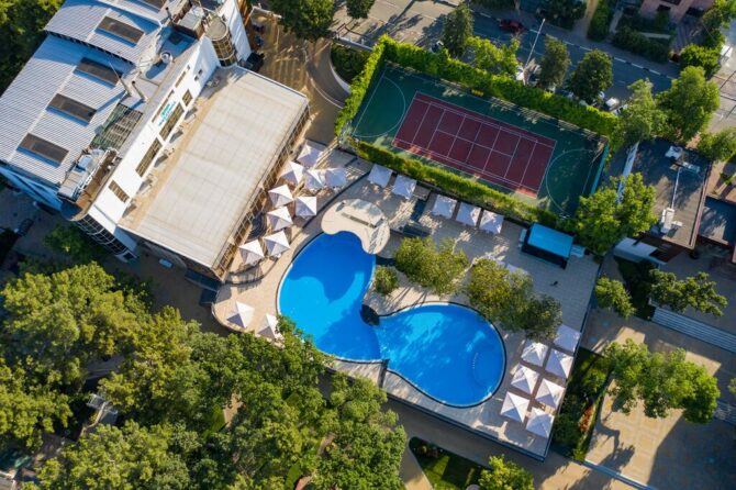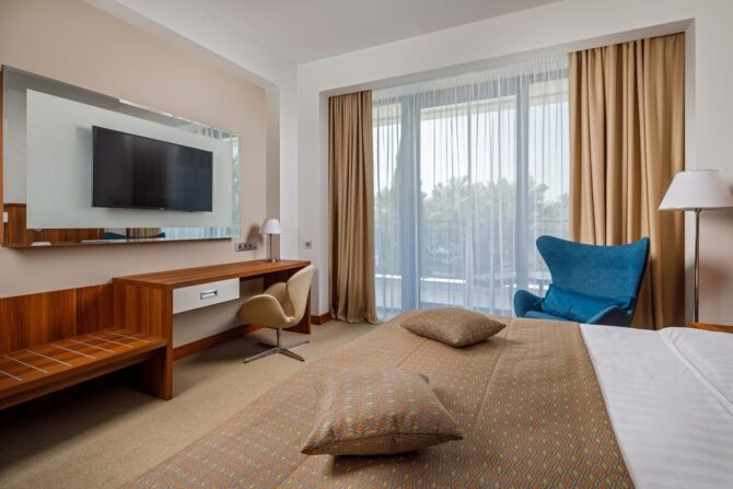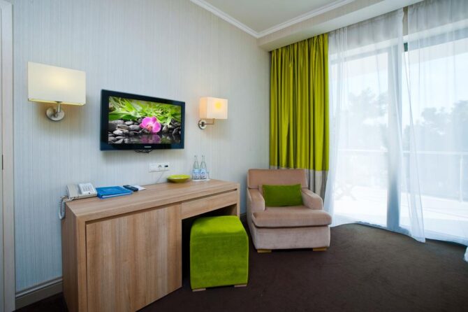 There are several swimming pools. One indoor and one uncovered. One pool is designed for sports exercises. There are training in water aerobics. It is quite deep and has its own terrace. There is also an outdoor pool. It has a children’s department, as well as various flash mobs and entertainment programs for children. There is a pool bar. Ice cream or cold drinks are available at any time. In summer, professional animators work near the outdoor pool and on the beach. If the vacation is not far off, you can now book a place in the hotel Primorye. This can be done in just a few minutes. The cost is indicated on the official website and is current at the time of viewing.