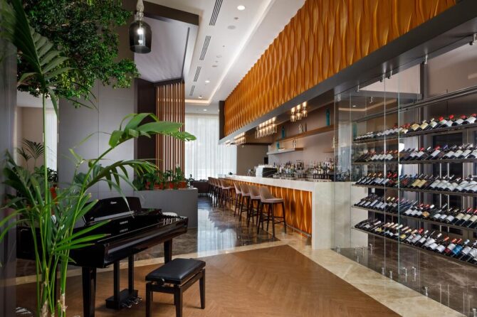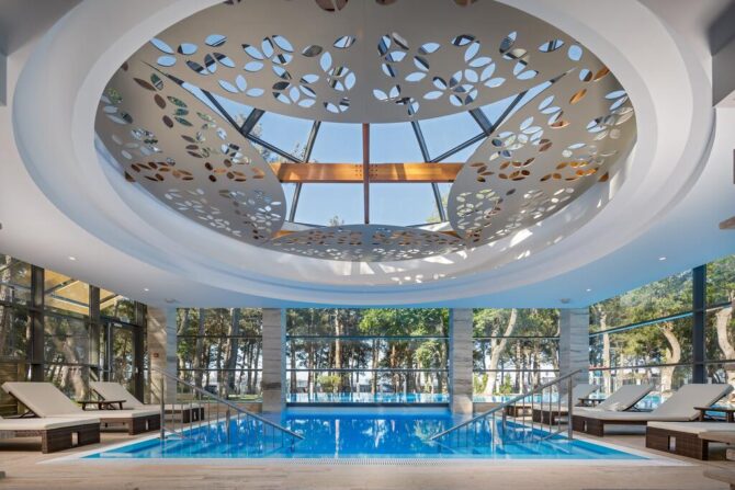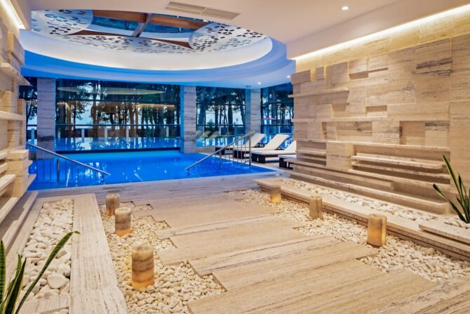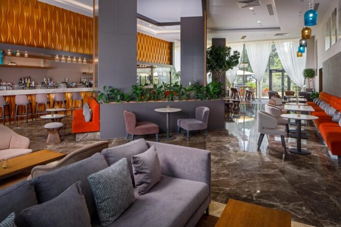 A unique refreshing cocktail can be enjoyed right by the pool. It is not necessary to leave the chaise longue. There is a bar in the pool. The work of the bar staff is fully aimed at providing the guest with comfort. Each visitor can also visit the sauna or hammam.
