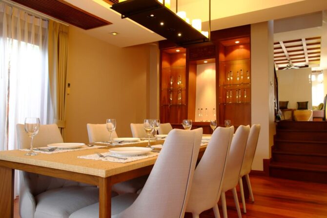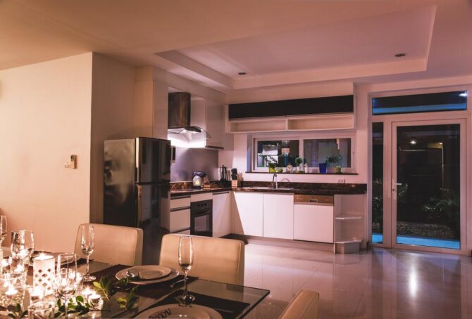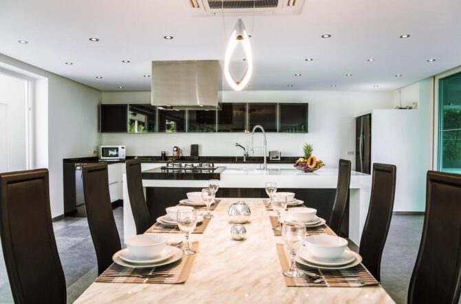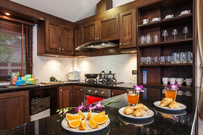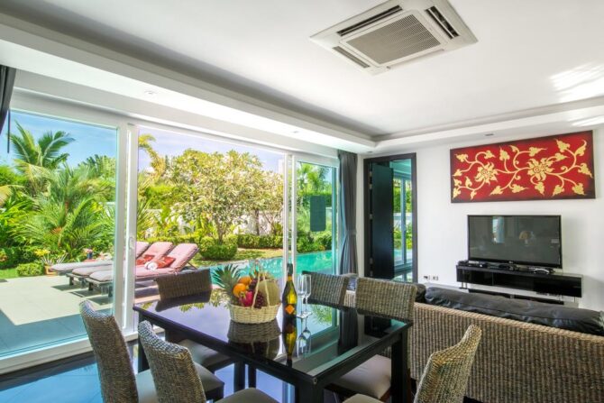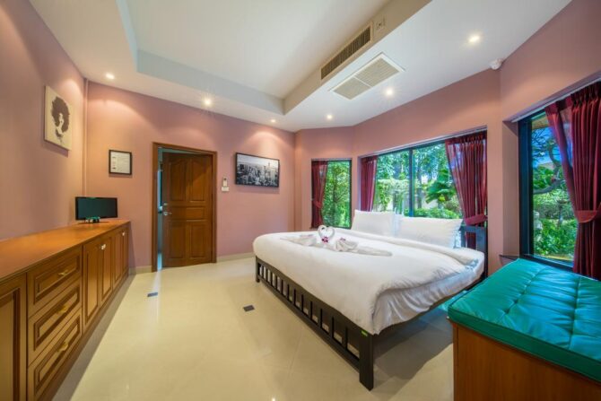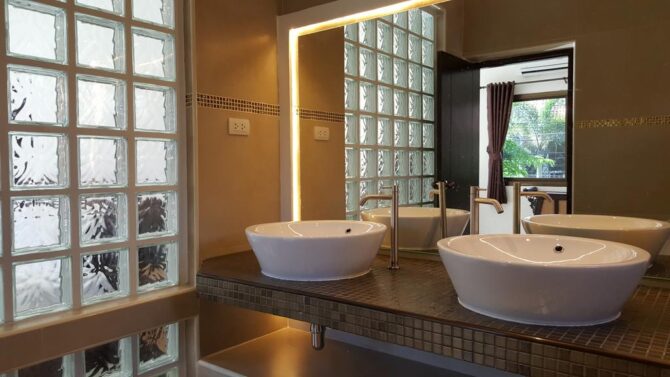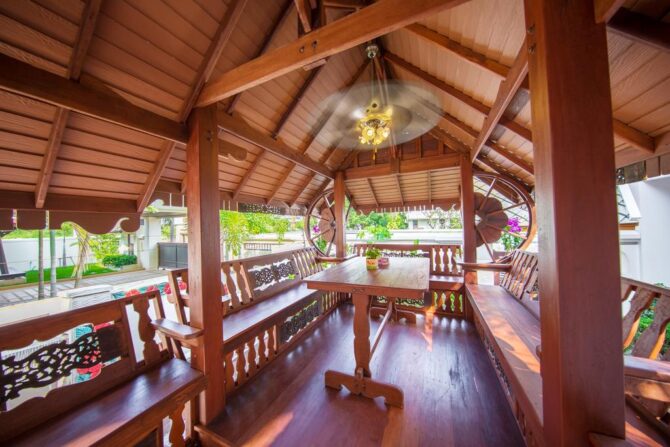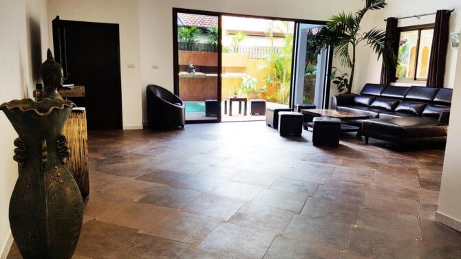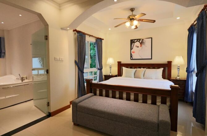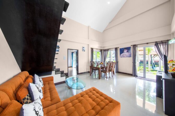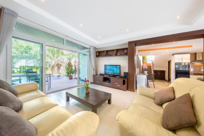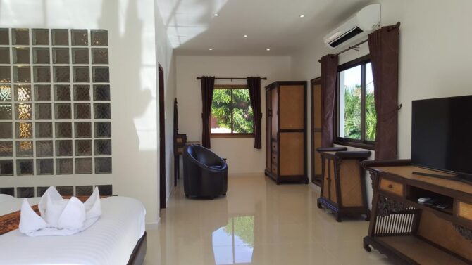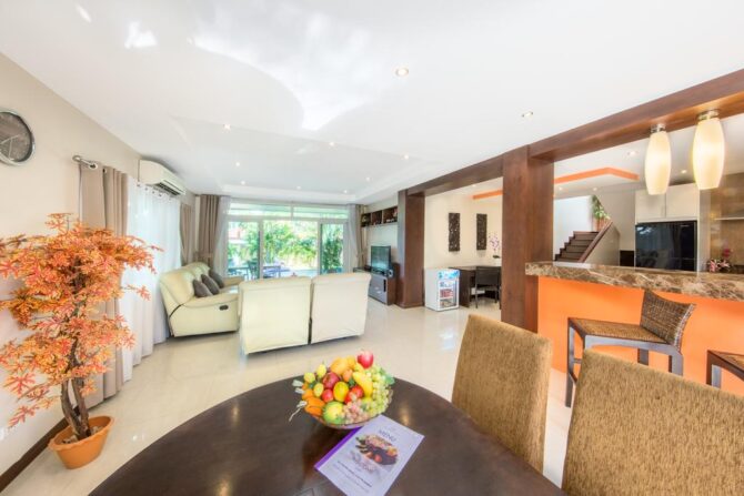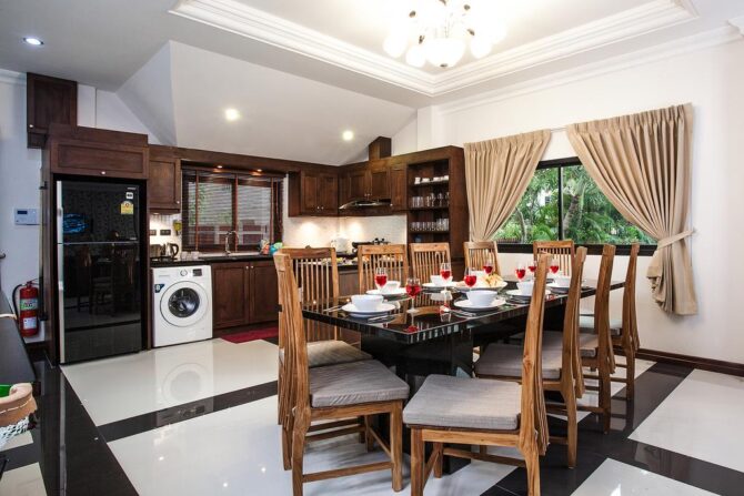 The house is equipped with everything you need, there is a living room with a seating area, a large diagonal TV, a kitchen where you can cook yourself, and a full bathroom with tub and shower. Baan Chatmanee villa rentals will be advantageous for large companies or families.