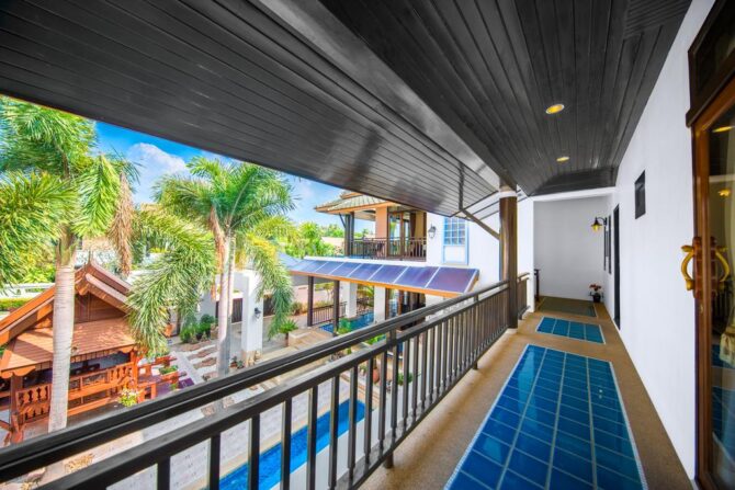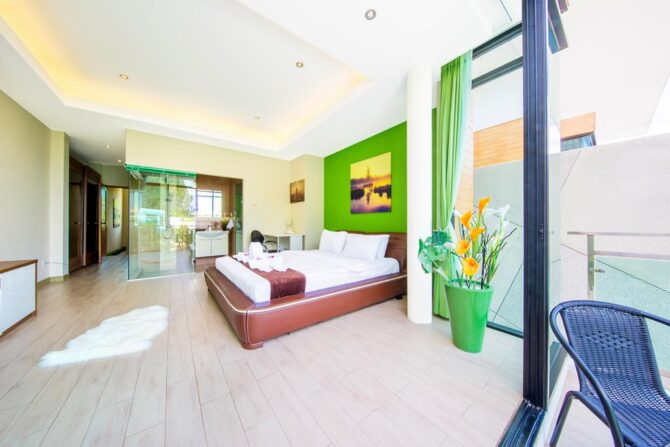 The huge VIP Villas Pattaya Green Residence Jomtien Beach comprises several villas with three, four and even five bedrooms for larger groups. Some villas have their own private pool and terrace with a viewing platform.