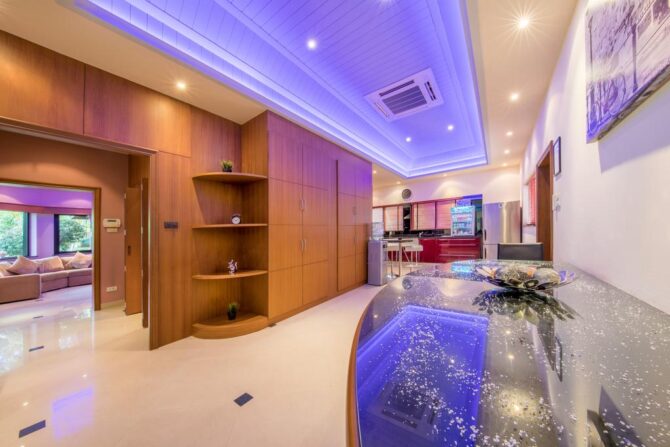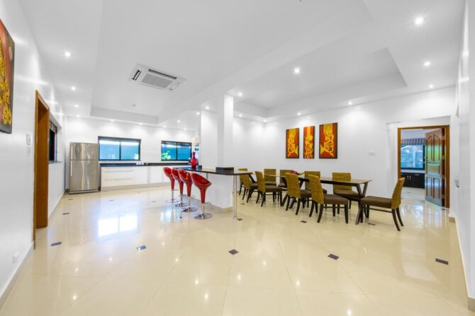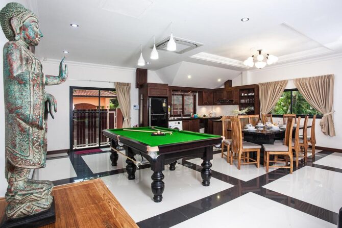 Villa Diamond Pattaya ‘s prime location makes it an attractive holiday destination. It is less than two kilometers from the major Jomtien Beach and only 5 kilometers from the Pattaya Floating Market, which attracts the interest of visitors. Guests of the villa can appreciate all the charms of civilization, being on a green island very close to the sea.