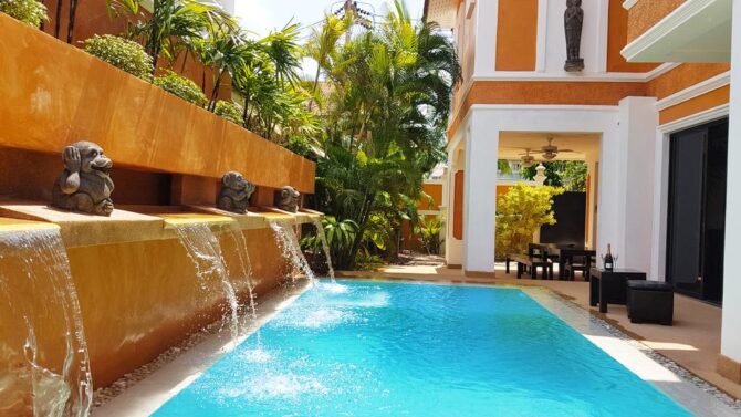 Sweet Villa Pattaya is located in South Pattaya, close to the main pedestrian street. Comfortable 3 or 4 bedroom homes await guests here, each home has its own outdoor pool. Sweet Villa Pattaya villa rentals in Pattaya are offered at the best prices in this part of the region. There is a possibility for guests to rent a car, or put their own in the free parking lot.