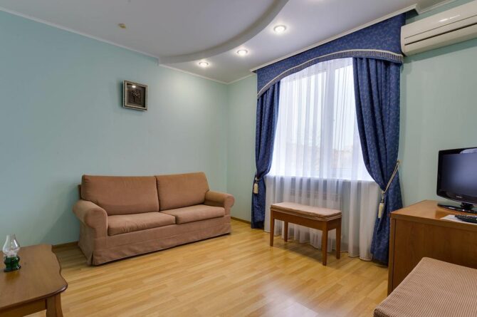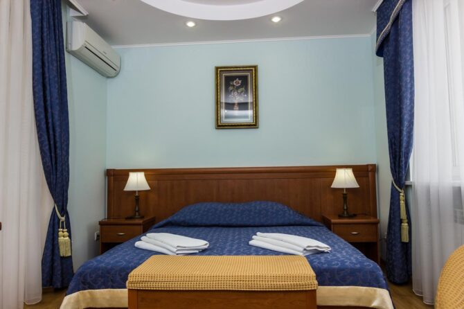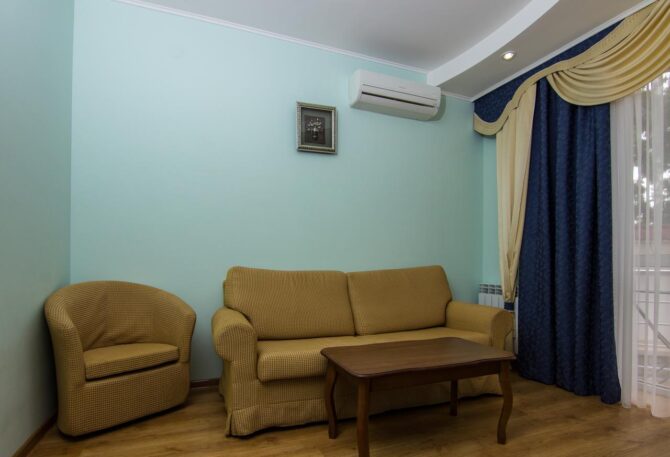 Hotel “Privat” in Evpatoria – an excellent example of quality of service. You can relax here both independently and with your family. The hotel is a 3-storey building with fifteen rooms.
